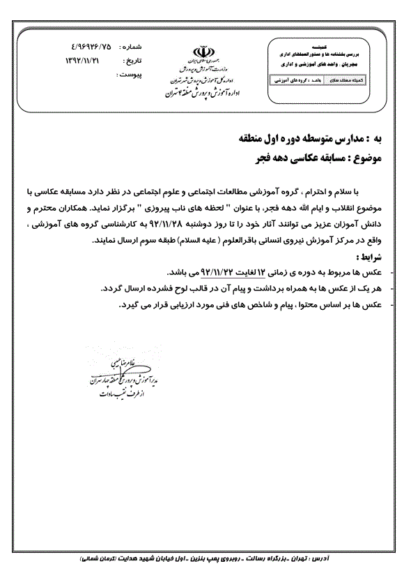 بخشنامه عکاسی دهه فجر